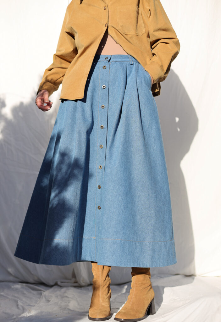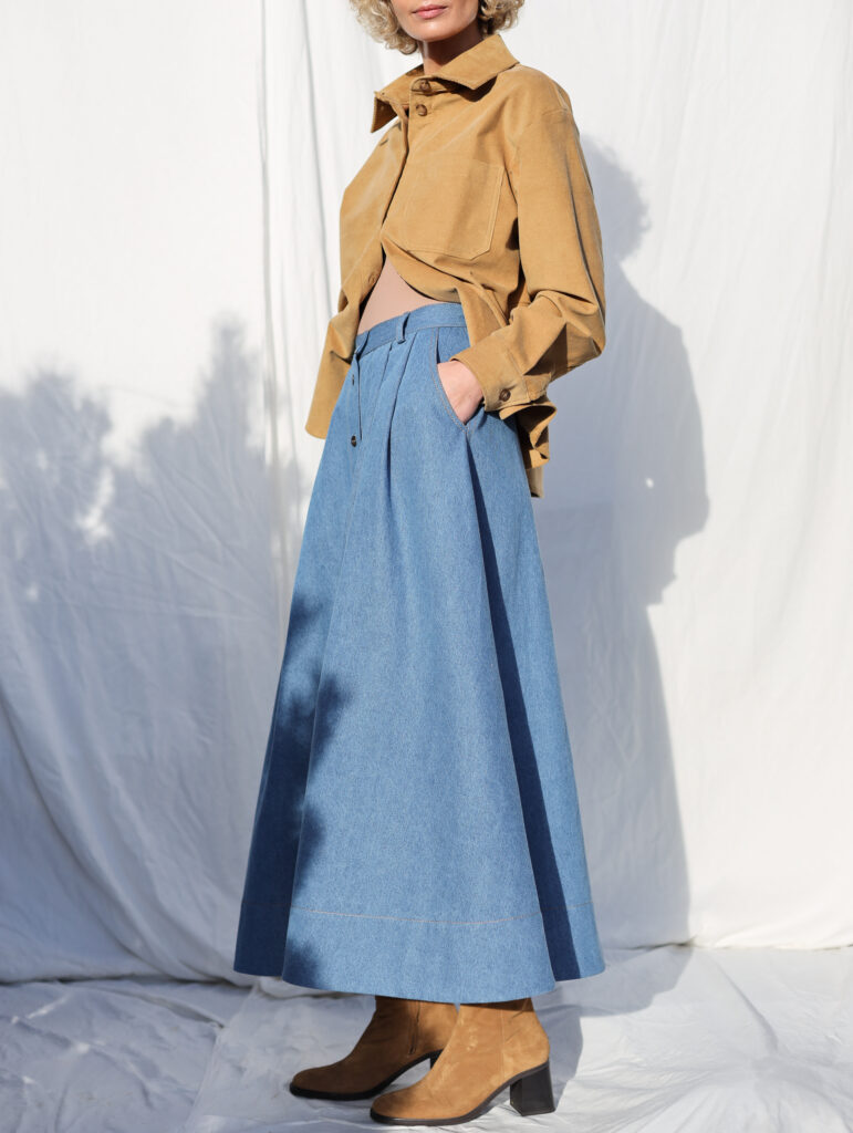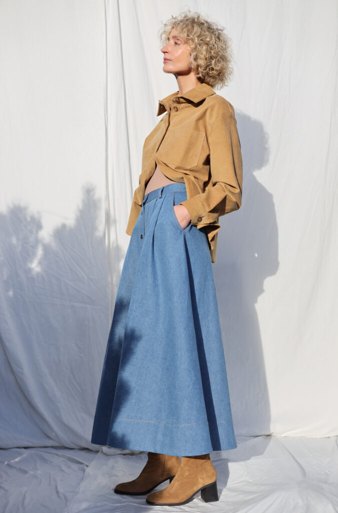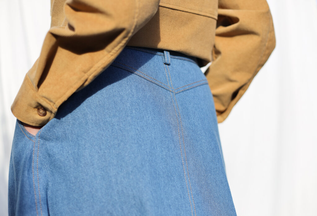 Simona is wearing a skirt in size Small and is 172 cm/5’8″ tall.