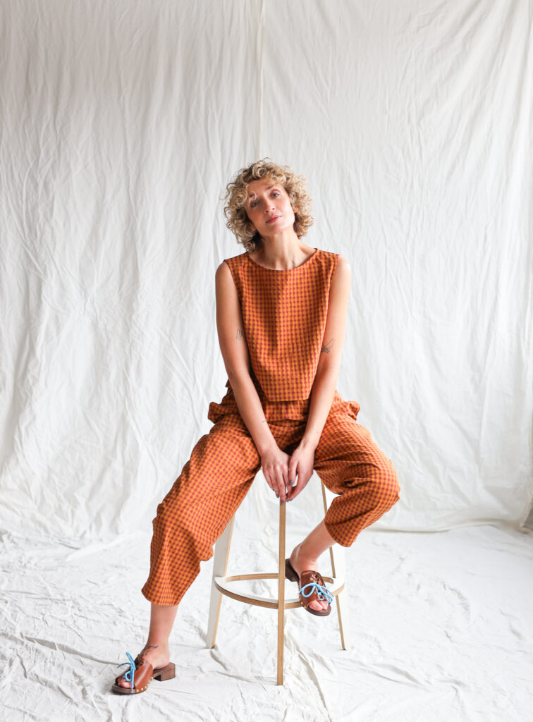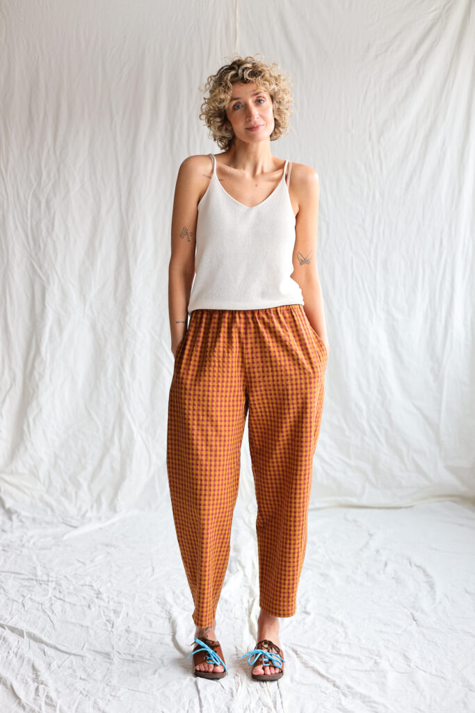 Simona is wearing trousers in size S and is 172 cm/5’8″ tall.