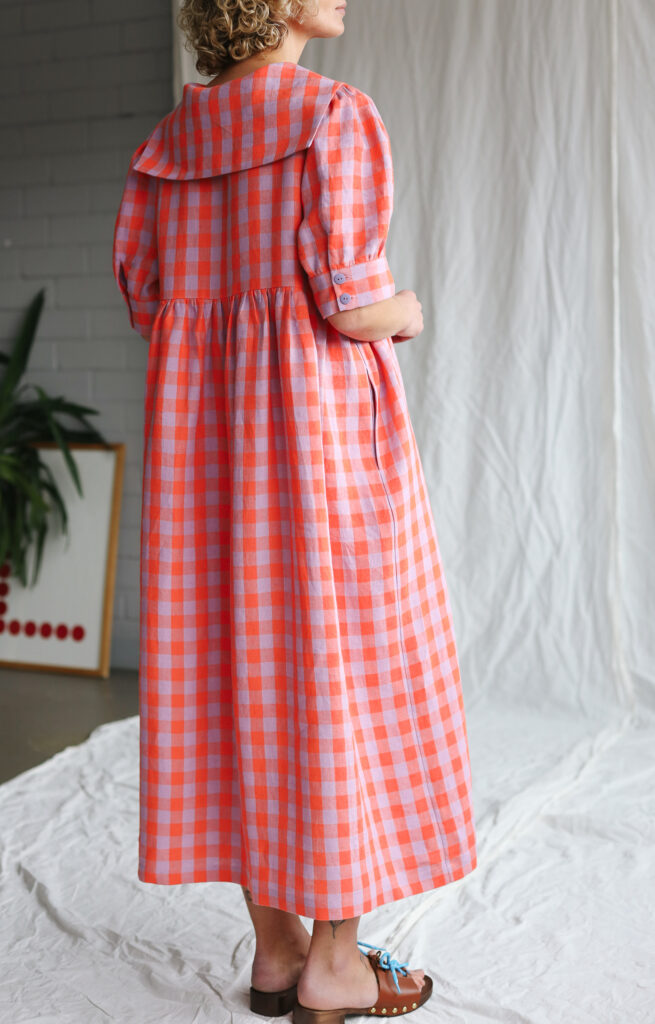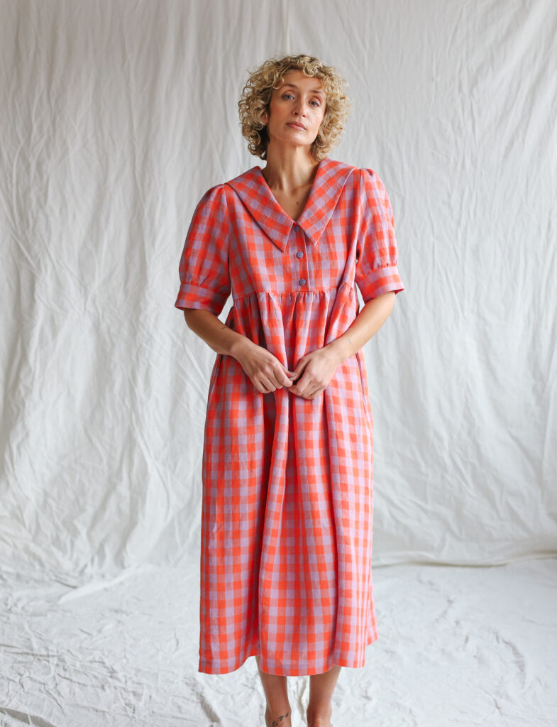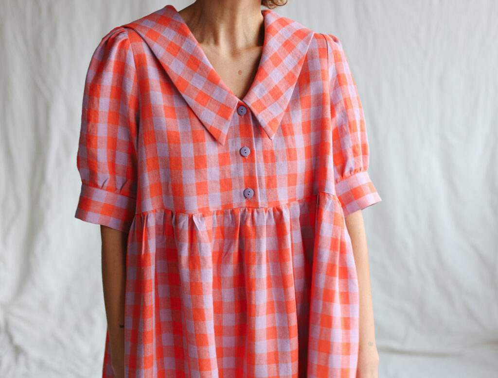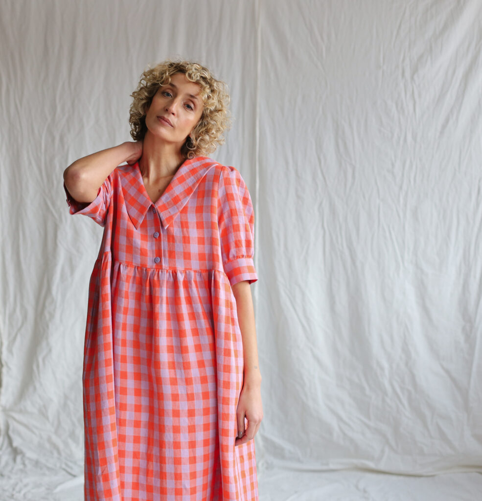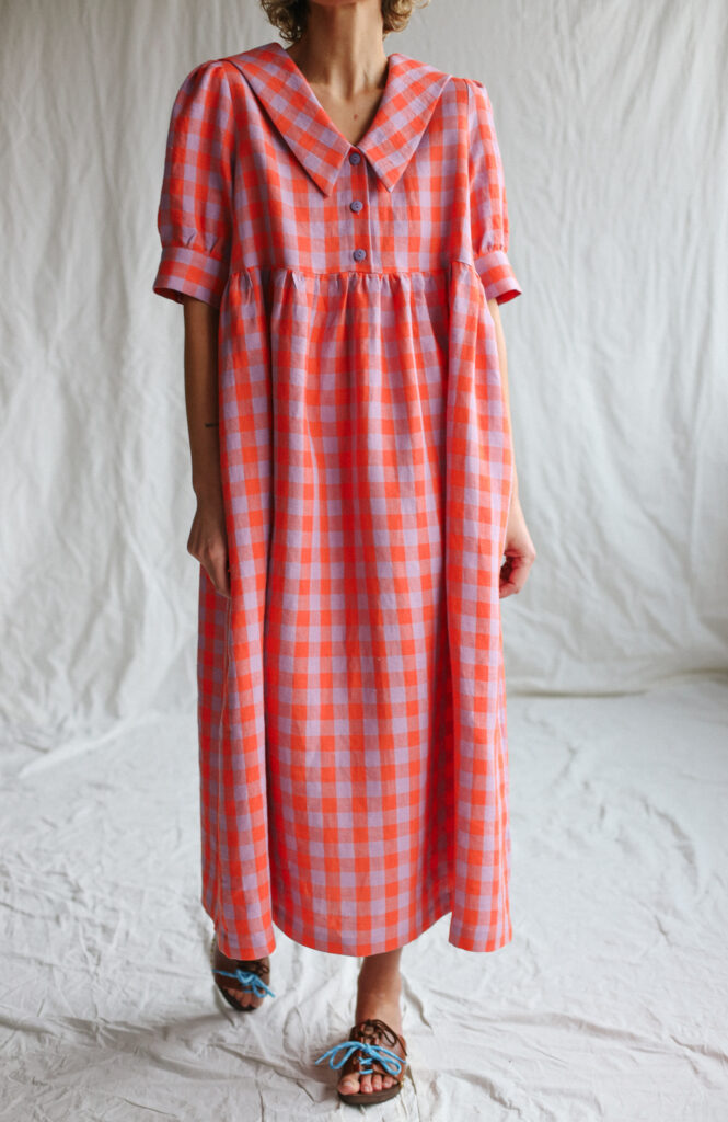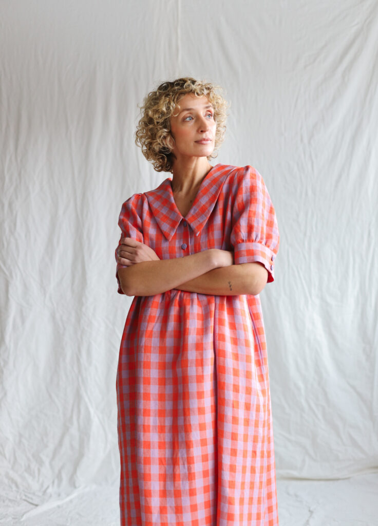 Simona is wearing linen dress in size S and is 172 cm/5’8″ tall.