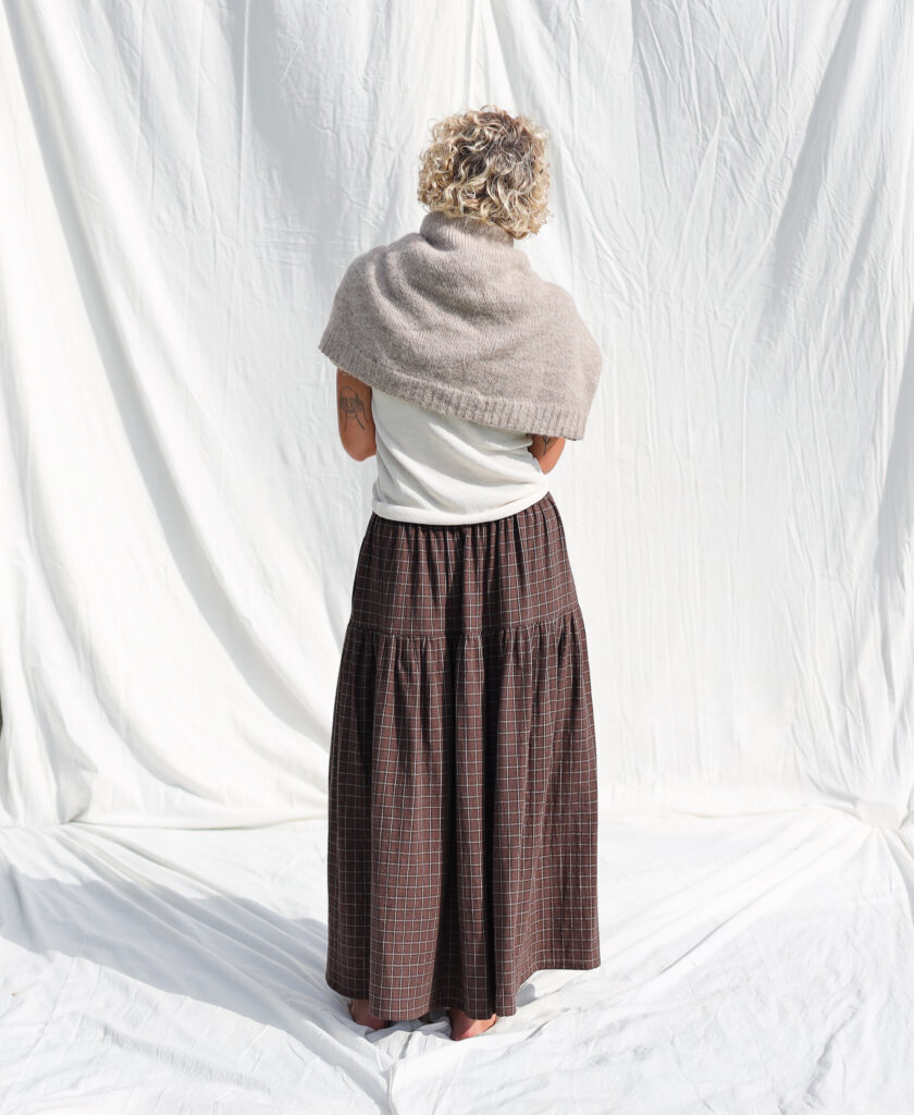 Made from a beautiful soft brown grid double gauze cotton. Elegant and feminine look, perfect for a special occasion or to wear it every day.