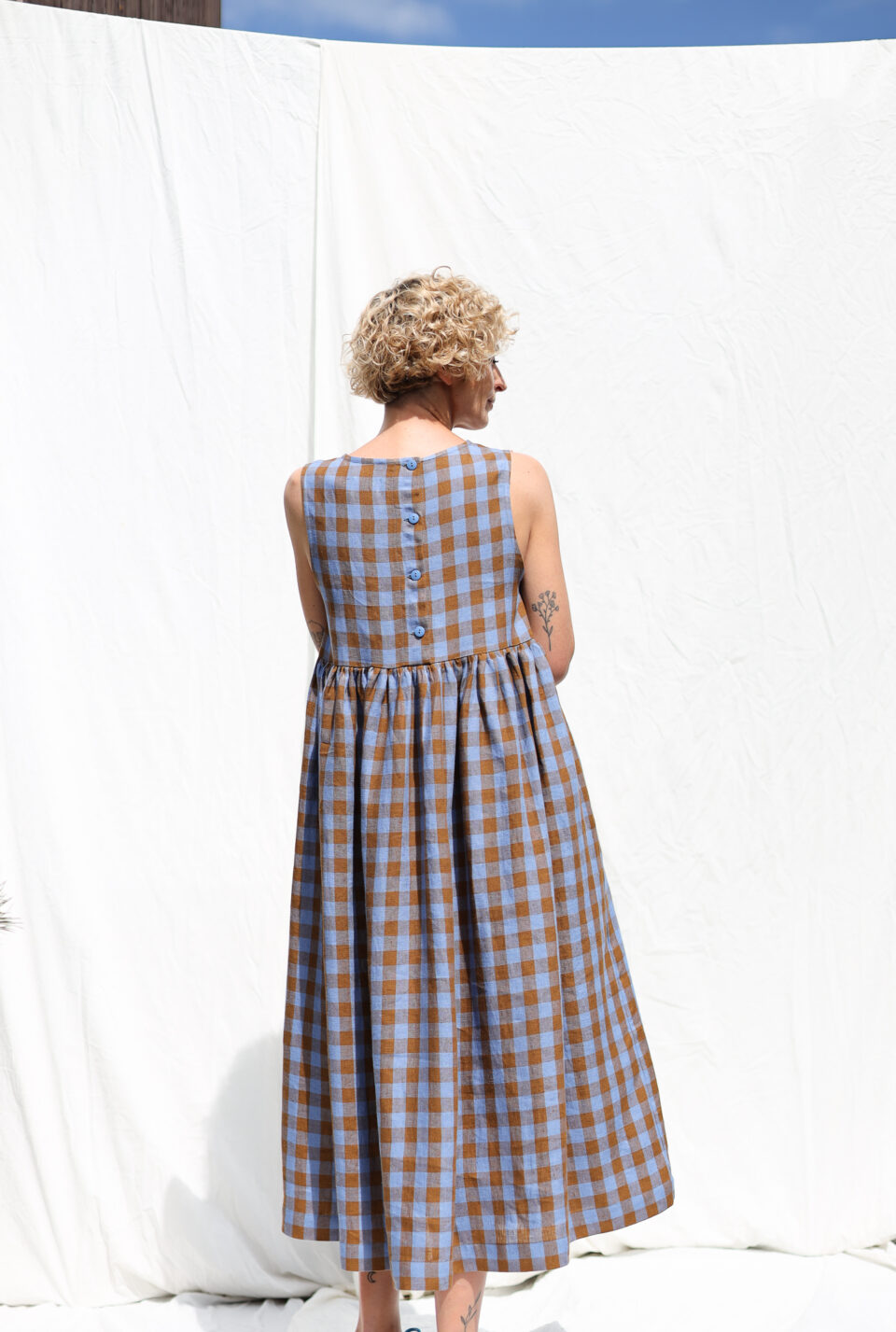 • Buttons opening at the backside of the dress