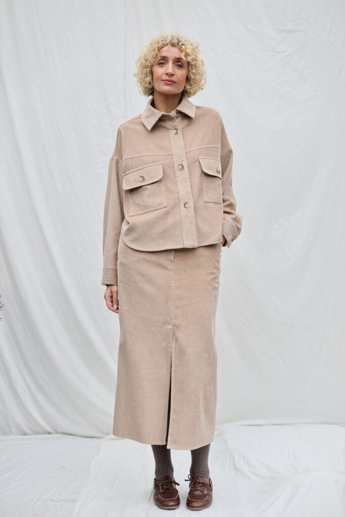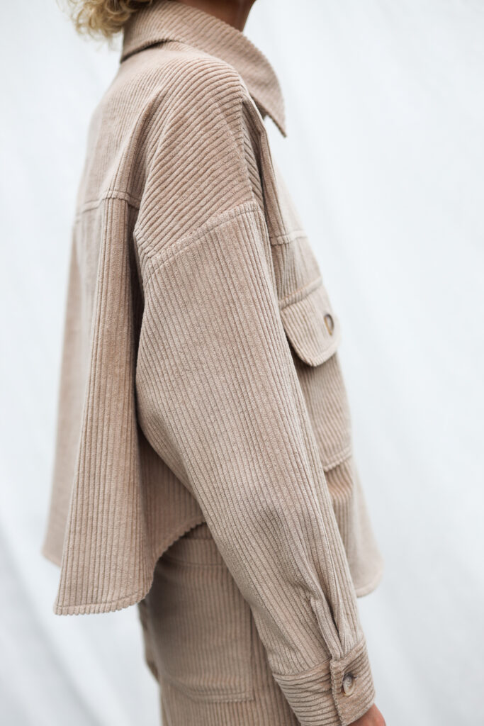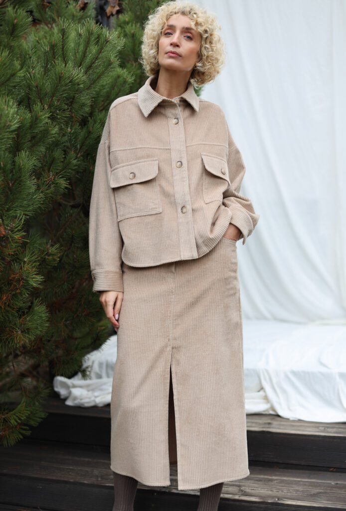 Made from a soft six-wale cord fabric. Denim jacket-inspired design, elegant and feminine look. Perfect for everyday and special occasions. Styling tip: pair it with our matching wide wale cord skirt or straight cut trousers LUNA.
